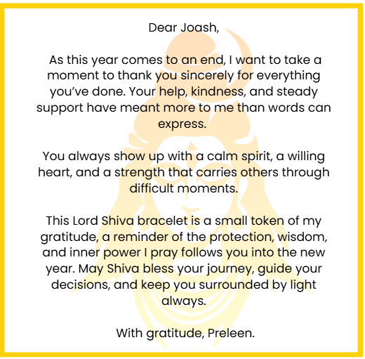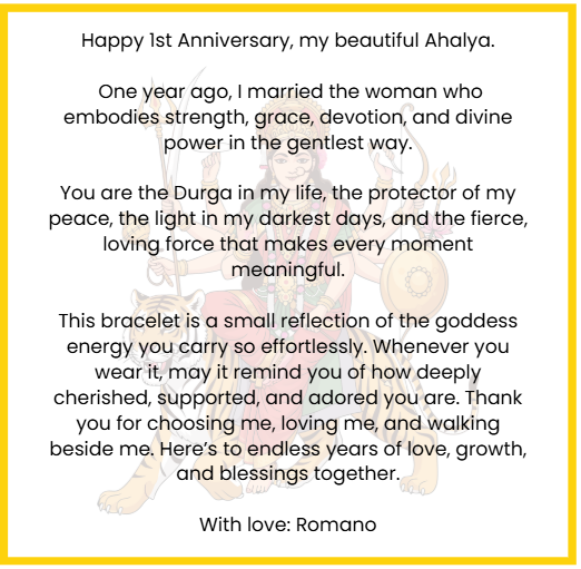 If you’re sending a Shakti Bhakti Bracelet as a gift, this Add a Note option allows you to include a personalised message that feels tender, thoughtful, and beautifully intentional.