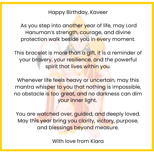 We will lovingly print your message on a 9x9cm 120gsm cardstock note, designed to match the warmth and golden essence of Shakti Bhakti. Your words will sit inside the package like a quiet prayer and will be the first thing they read when opening their blessing.